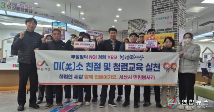 전국연합뉴스 김용태 기자 | 민원봉사과에서는 직원들의 친절 태도를 생활화하고 민원담당 공무원의 업무 역량 및 청렴의식을 강화하기 위해 매월 셋째 주 금요일에‘종합민원실 미소(微笑) 친절 및 청렴교육’을 실시한다고 밝혔다.