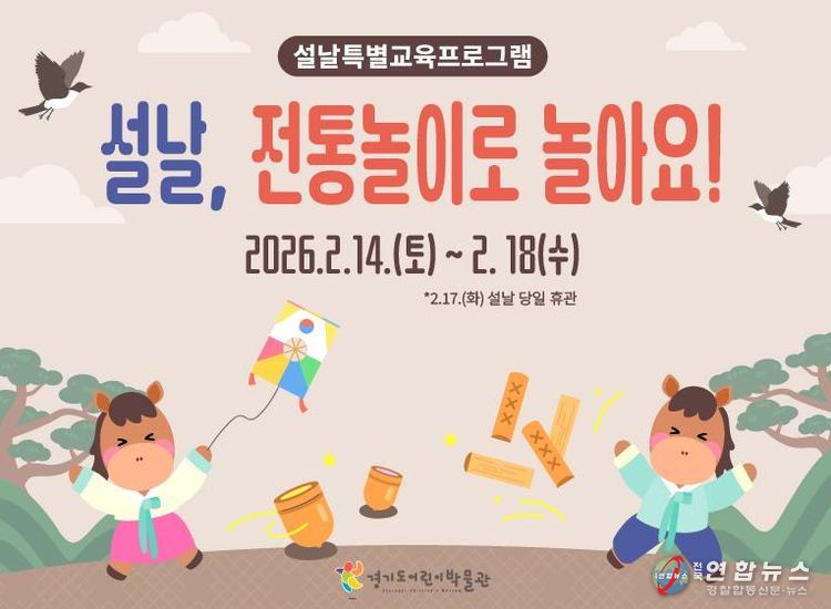 전국연합뉴스 조민준 기자 | 경기문화재단 경기도어린이박물관은 설날을 맞이하여 2026년 2월 14일부터 2월 18일까지 설날 특별프로그램 '설날, 전통놀이로 놀아요!'를 운영한다. 설 연휴 동안 박물관을 방문하는 어린이와 동반 가족을 위해 가족 간의 유대감을 높일 수 있는 전통문화 체험프로그램 3종을 준비했다.