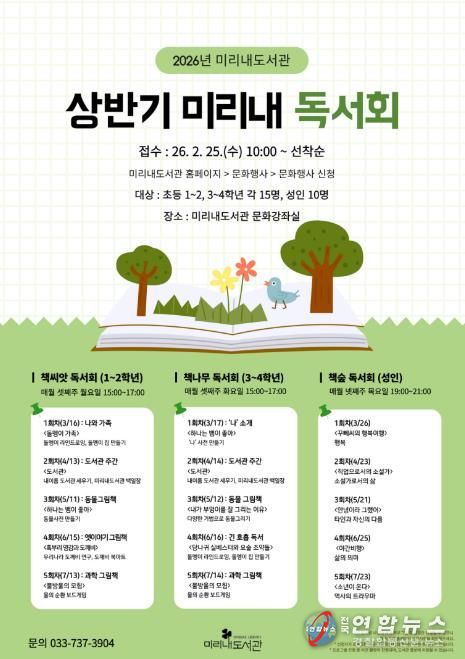 전국연합뉴스 유근택 기자 | 원주시 미리내도서관은 독서 공동체를 활성화하고 지역사회에 독서문화를 정착시키기 위해, 오는 3월부터 7월까지 ‘2026년 상반기 미리내 독서회’를 운영한다.