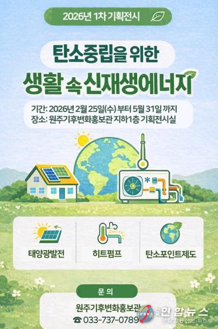 전국연합뉴스 유근택 기자 | 원주기후변화홍보관은 2월 25일부터 5월 31일까지 기획 전시 ‘탄소중립을 위한 생활 속의 신재생에너지’를 개최한다.
