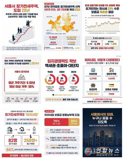 전국연합뉴스 김태연 기자 | 서울 대표 주거사다리 ‘장기전세주택’의 입주자들은 작년 한 해만 보증금 약 10조 원을 절감한 것으로 나타났다. 또 지난 2024년 도입된 장기전세주택Ⅱ ‘미리내집’ 입주자 설문 결과, 응답자의 84%가 ‘향후 가족계획이 있다’고 답해 ‘저출생 극복’이라는 정책 취지에도 발맞춰 가고 있는 것으로 조사됐다.