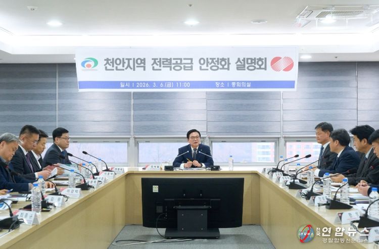 전국연합뉴스 김대환 기자 | 천안시는 6일 시청 중회의실에서 한국전력공사 대전세종충남본부와 함께 ‘천안지역 전력공급 안정화를 위한 설명회’를 개최하고 중장기 전력 인프라 확충 방안을 논의했다.