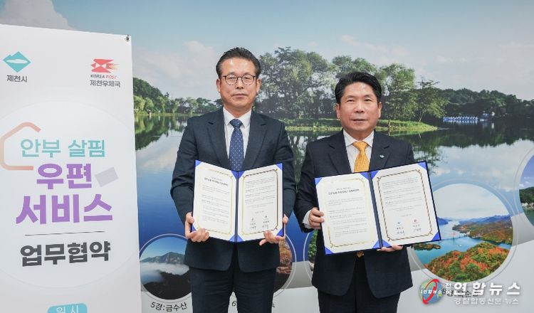 전국연합뉴스 이동수 기자 | 제천시는 지난 12일 제천우체국(국장 이준규)과 고독사 예방을 위한‘안부살핌 우편서비스’사업의 성공적인 추진을 위한 업무협약을 체결했다.