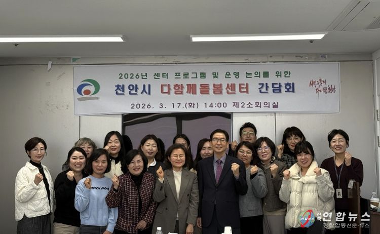 전국연합뉴스 김대환 기자 | 천안시가 17일 시청 제2소회의실에서 관내 다함께돌봄센터 센터장 15명과 간담회를 열고 안정적인 돌봄 서비스 제공 및 센터 운영 활성화 방안을 논의했다.