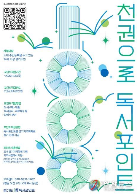 전국연합뉴스 조민준 기자 | 경기도가 도민 독서 습관 형성과 지역서점 이용 확대를 위한 ‘천권으로 독서포인트’ 사업을 개편했다. 적립 한도와 사용처를 확대하고 인증 절차를 간소화한 것이 핵심이다.