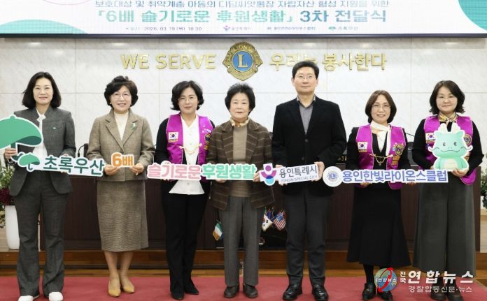 전국연합뉴스 기자 | 용인특례시는 19일 오후 용인라이온스회관 3층에서 초록우산 어린이재단 경기1지역본부와 용인한빛라이온스클럽과 함께 ‘용인시 6배 슬기로운 후원생활’ 캠페인 3차 전달식을 열었다고 20일 밝혔다.