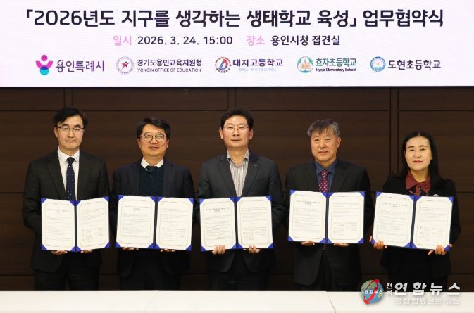 전국연합뉴스 기자 | 용인특례시는 24일 시청 접견실에서 용인교육지원청을 비롯해 3개 학교와 ‘지구를 생각하는 생태학교 육성사업’을 위한 협약을 맺었다.