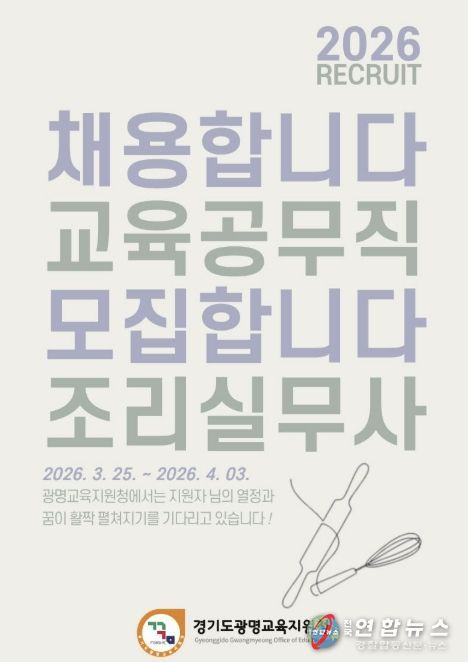 전국연합뉴스 조민준 기자 | 경기도광명교육지원청은 지난 26일 하안동 광명시민체육관에서 개최된 '2026년 광명시 일자리 박람회'에 광명시민과 구직희망자와의 적극적인 참여 속에 성공적으로 일자리홍보를 마무리했다고 밝혔다.