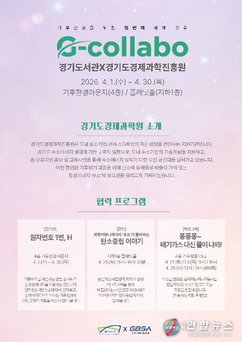전국연합뉴스 조민준 기자 | 경기도서관은 수소 에너지를 널리 알리기 위해 4월 한 달간 경기도경제과학진흥원과 협업프로젝트를 운영한다고 1일 밝혔다. 전시와 강좌, 체험을 연계한 프로그램을 통해 수소산업과 탄소중립에 대한 인식을 확산하는 것이 목적이다.