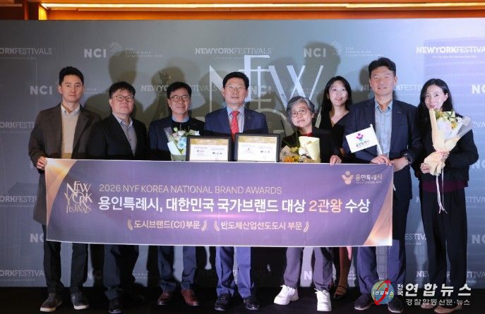 전국연합뉴스 기자 | 용인특례시가 칸 국제광고제, 클리오광고제와 함께 세계 3대 광고제로 꼽히는 뉴욕페스티벌(NYF)이 주관하는 ‘2026 뉴욕페스티벌 대한민국-국가브랜드 대상’(NYF K-NBA)에서 도시브랜드(CI) 부문과 반도체산업 선도 도시 부문 1위로 선정됐다.