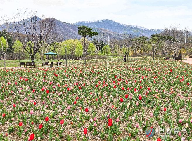 전국연합뉴스 김대환 기자 | 천안의 대표 명소인 삼거리공원 너른뜰 튤립정원에 10만 송이의 튤립이 꽃망울을 터트리며 시민들에게 봄의 설렘을 전하고 있다.