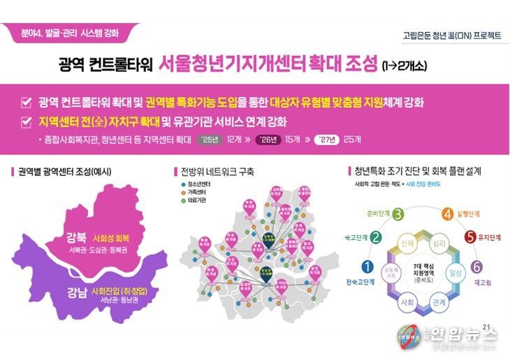 전국연합뉴스 김태연 기자 | 불안정한 미래와 개인화된 사회 분위기로 인해 청년들의 고립과 은둔이 심화되고 있는 가운데, 2023년 전국 최초로 고립은둔청년 종합대책을 내놓은 서울시가 ‘사후 지원’을 넘어 ‘발생 예방’으로 정책의 방향을 전면 전환한다. 아동·청소년기에 고립은둔 가능성을 조기진단해 선제적으로 대응하고 가족과 함께 예방과 회복을 이어가는 지원체계 가동이 핵심이다.