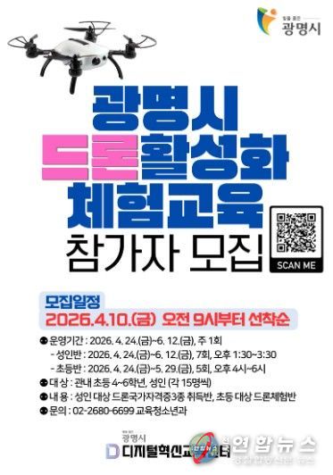 전국연합뉴스 조민준 기자 | 광명시가 4차 산업혁명 핵심 기술인 드론으로 시민 디지털 역량을 강화하고 미래 인재 양성 발판을 마련한다.