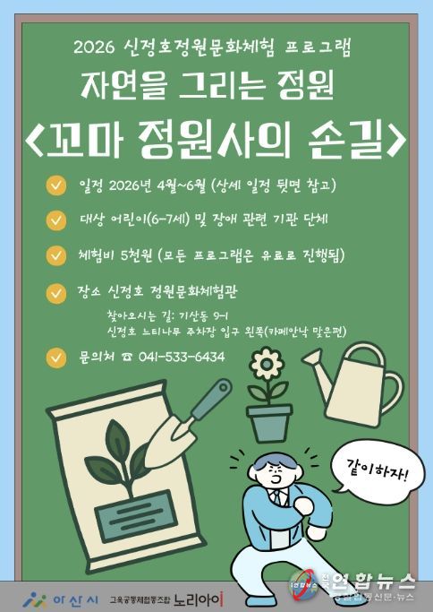 전국연합뉴스 김용태 기자 | 아산시는 오는 4월 13일부터 6월 23일까지 신정호정원에서 상반기 정원문화체험 프로그램을 운영한다고 밝혔다.