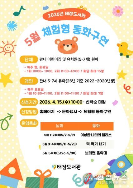 5월에는 ▲이상한 나라의 앨리스 ▲떡 먹기 내기 ▲브레맨 음악대 등 아이들에게 친숙하고 흥미로운 동화를 준비했다.