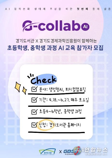 전국연합뉴스 조민준 기자 | 경기도서관은 경기도경제과학진흥원 협업 프로젝트 ‘지-콜라보(G-Collabo)’를 기후환경 중심에서 인공지능(AI) 분야까지 확대하고, 오는 6월까지 초·중등 대상 로봇공학 체험 프로그램을 운영한다.