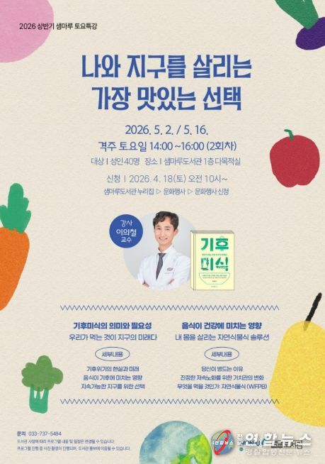 이번 프로그램은 특정 주제를 선정하고 매월 전문가를 초빙해 각 2회씩 강연을 진행한다. 5월 특강에서는 ‘기후미식’의 저자인 이의철 작가가 음식을 통한 기후와 우리 건강을 주제로 첫 번째 강연에 나선다.