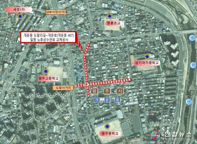 전국연합뉴스 유근택 기자 | 원주시상하수도사업소는 깨끗한 수돗물 공급을 위해 5월부터 ‘개운동 도말리길-개운로 일원 노후상수관 교체공사’를 추진한다.