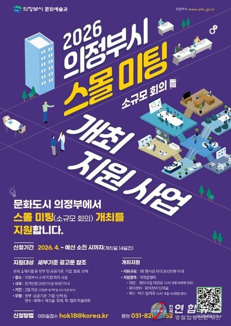 전국연합뉴스 박점규 기자 | 의정부시는 관외에 소재지를 둔 기관 및 단체 등을 대상으로 ‘2026 의정부시 스몰미팅(소규모 회의) 개최 지원사업’을 추진한다.