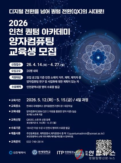 전국연합뉴스 원영호 기자 | 인천광역시가 글로벌 기술 패권 경쟁의 핵심으로 떠오른 양자기술 분야를 선도하기 위해 지역 전문가 양성에 본격적으로 나선다.