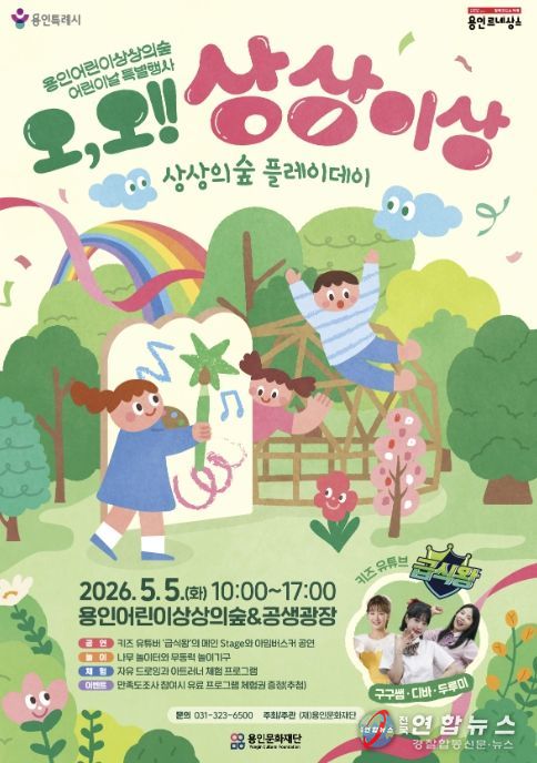 전국연합뉴스 기자 | 용인문화재단은 오는 5월 5일 어린이날을 맞아 용인어린이상상의숲에서 2026년 어린이날 특별행사 ‘오, 오! 상상이상’을 개최한다고 밝혔다.