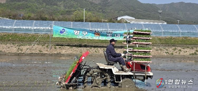 전국연합뉴스 신승국 기자 | 양구군이 21일 오전, 양구읍 학조리에서 올해 첫 모내기 행사를 진행하며 본격적인 영농철의 시작을 알렸다.