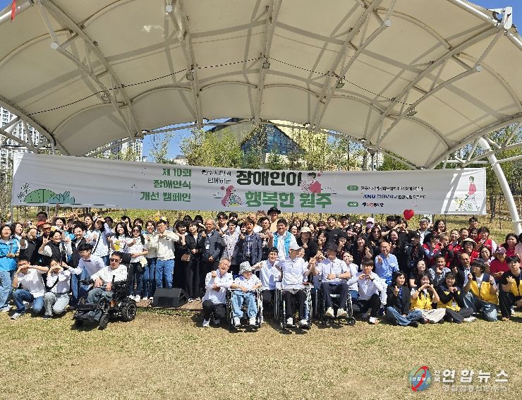 전국연합뉴스 유근택 기자 | 원주시지역사회보장협의체 장애인분과는 장애인의 날을 기념해 지난 18일 기업도시 샘마루공원에서 개최한 장애인식 개선 캠페인 ‘장애인이 행복한 원주’를 성황리에 마쳤다.
