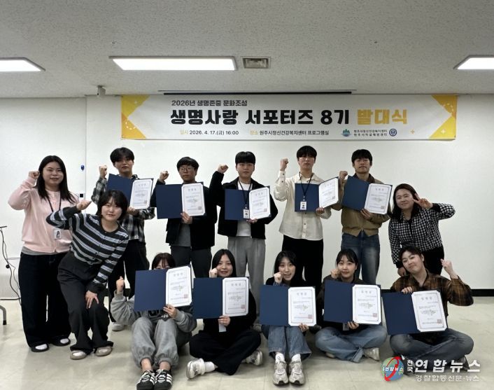 전국연합뉴스 유근택 기자 | 원주시자살예방센터는 지난 17일 자살 예방과 생명 존중 문화 확산을 위한 ‘제8기 생명사랑 서포터즈’ 발대식을 개최했다.
