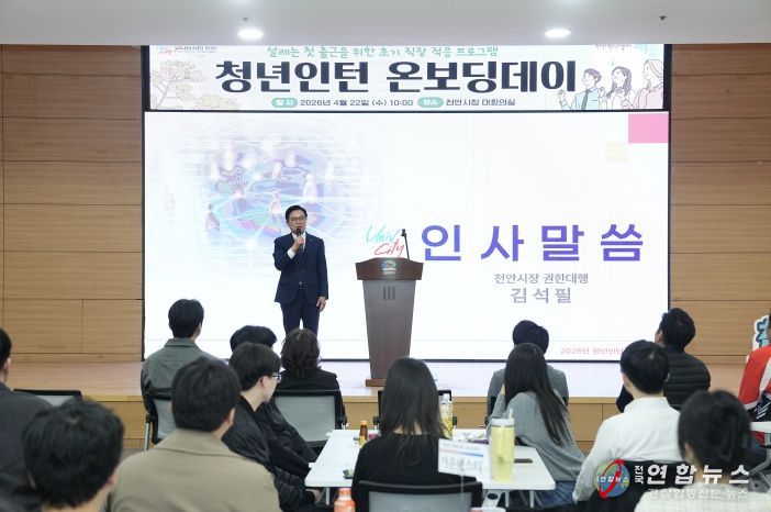 전국연합뉴스 김대환 기자 | 천안시는 22일 시청 대회의실에서 청년인턴의 안정적인 직장 적응을 지원하는 ‘청년인턴 온보딩데이’를 개최했다.