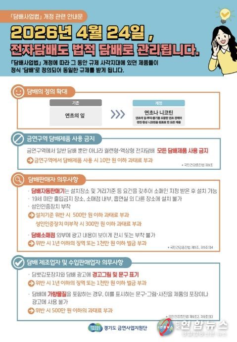 이번 점검은 2026년 4월 24일부터 시행되는 '담배사업법' 개정에 따른 조치로, 액상형 전자담배 등 신종 담배 제품이 처음으로 본격적인 법적 관리 대상에 포함되면서 점검 범위가 크게 확대됐다.