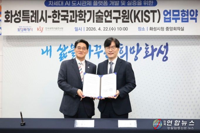 전국연합뉴스 이명후 기자 | 화성특례시는 도시상태정의 기반의 AI 도시관제 체계로의 전환에 본격 착수했다. 시는 22일 한국과학기술연구원(KIST)과 ‘차세대 AI 도시관제 플랫폼 개발 및 실증’을 위한 업무협약(MOU)을 체결했다.
