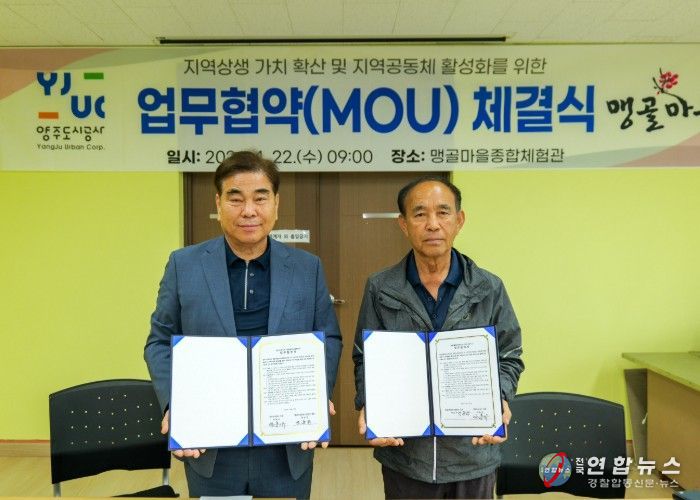 전국연합뉴스 박점규 기자 | 양주도시공사는 지난 22일 양주시 남면 맹골마을에서 농촌일손돕기 자원봉사활동을 실시하고, 맹골마을영농조합법인과 지역상생을 위한 업무협약을 체결했다고 밝혔다.
