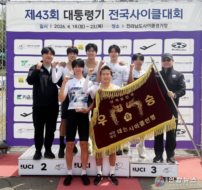 전국연합뉴스 박점규 기자 | 의정부시청 직장운동경기부 사이클팀이 4월 18일부터 23일까지 6일간 전라남도 나주에서 열린 ‘제43회 대통령기 전국사이클대회’에서 종합우승을 차지하며 2년 연속 정상에 오르는 성과를 거뒀다.