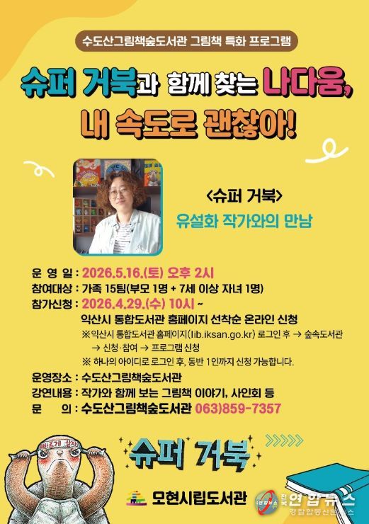 익산시는 수도산그림책숲도서관에서 오는 5월 16일 강연 프로그램 '유설화 작가와의 만남'을 운영한다고 24일 밝혔다.