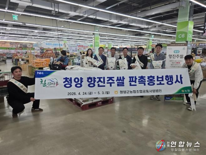 전국연합뉴스 김용태 기자 | 청양군이 24일부터 오는 5월 3일까지 10일간 농협 하나로마트 대전점(중구 안영동)에서 청양군 대표 고품질 쌀 브랜드인 ‘칠갑마루 향진주쌀’의 판촉·홍보 행사를 진행한다.