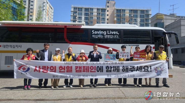 전국연합뉴스 박점규 기자 | 양주2동 적십자봉사회가 지난 24일 고읍지구대 주차장에서 ‘사랑의 헌혈 캠페인’을 열고 주민들을 대상으로 헌혈 참여를 독려했다.