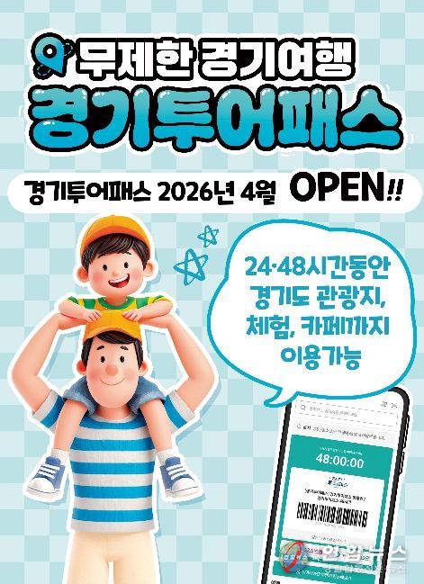 전국연합뉴스 조민준 기자 | 경기도가 5월 가정의 달과 황금연휴를 맞아 도민의 나들이 비용 부담을 덜어줄 ‘경기 투어패스’와 ‘베이밸리 투어패스’를 오는 27일과 28일 잇따라 선보인다. 경기 투어패스는 단 2만 원대의 패스권 하나로 도내 130여개 관광지를 무제한으로 즐길 수 있도록 기획한 초가성비 통합이용권이다.