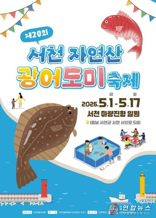 전국연합뉴스 김대환 기자 | 서천군은 오는 5월 1일부터 17일까지 마량진항 일원에서 ‘제20회 서천 자연산 광어·도미 축제’를 개최한다.