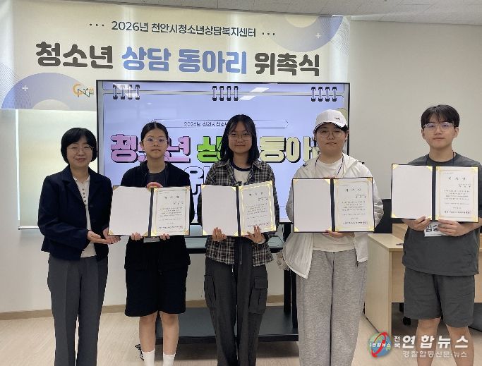 전국연합뉴스 김대환 기자 | 천안시청소년재단 천안시청소년상담복지센터는 지난 25일 천안시청소년복합커뮤니티센터에서 ‘2026년 청소년 상담 동아리 위촉식’을 개최했다.