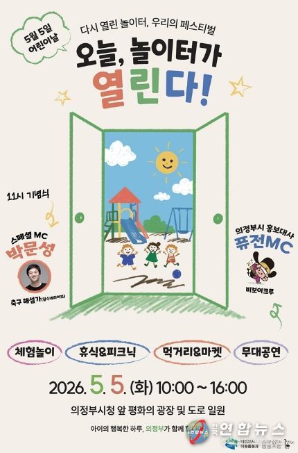 전국연합뉴스 박점규 기자 | 의정부시는 제104회 어린이날을 맞아 5월 5일 오전 10시부터 오후 4시까지 의정부시청 앞 평화의 광장 및 도로 일원에서 ‘2026년 의정부시 어린이날 기념행사’를 개최한다.