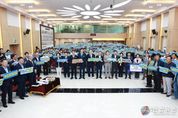 전국연합뉴스 김철환 기자 | 화순군은 10월 2일 군청 대회의실에서 ‘농어촌 기본소득 시범사업 화순 유치 결의대회’를 열고, 시범사업 유치를 위한 강한 의지를 밝혔다. 이번 결의대회는 인구 감소와 고령화 등으로 침체된 농촌 지역에 활력을 불어넣기 위해 정부가 추진 중인 ‘농어촌 기본소득 시범사업’의 대상지로 화순군이 선정될 수 있도록 결의를 다지는 자리였다. ‘농어촌 기본소득 시범사업’은 전국 69개 인구감소지역 중 6개 군을 선정해 2026년부터 2년간 해당 지역 주민 모두에게 매월 15만 원의 기본소득을 지급하는 정책이다. 결의대회에는 구복규 화순군수, 오형열 군의회 의장을 포함한 군의원 10명이 참석해 피켓을 들고 화순군의 적극적인 참여 의지를 나타냈다. 또한 화순군 농촌지도자회 회원 20여 명과 군청 직원 250여 명도 미니 현수막을 펼쳐 보이며 시범사업 유치에 대한 강한 의지를 나타냈다. 행사 말미에는 참석자 전원이 ‘농어촌 기본소득 시범사업은 화순으로’를 힘차게 외치며, 화순군민의 단합된 염원과 결의를 다시 한번 확인했다. 구복규 군수는 “침체된 농촌에 활력을 불