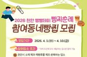 전국연합뉴스 김대환 기자 | 천안시가 오는 6월 열리는 ‘2026 빵지순례 빵빵데이’에 참여할 역량 있는 동네 빵집을 공개 모집한다고 1일 밝혔다. 대한제과협회 천안시지부가 주최·주관하는 ‘2026 빵지순례 빵빵데이’는 오는 6월 13일부터 14일까지 이틀간 열린다. 이번 행사는 시민과 관광객이 참여 제과업소를 직접 방문해 천안 빵의 맛과 매력을 체험하는 ‘빵지순례’ 형태로 운영될 예정이다. 참여 업소 모집 기간은 1일부터 10일까지다. 신청 대상은 천안시 소재 제과·제빵류 제조·판매 업소로, 천안 지역 농축산물을 1가지 이상 사용한 제과·제빵류 제품을 10종 이상 판매하는 곳이어야 한다. 또한 행사 기간 중 제조한 제과·제빵류 제품에 대해 10% 할인 판매가 가능해야 한다. 참여를 희망하는 업소는 기한 내에 대한제과협회 천안시지부로 신청하면 된다. 시는 이번 행사가 지역 제과업소의 경쟁력을 높이는 것은 물론, 관광객들에게 풍성한 먹거리를 제공해 지역 경제 활성화에 기여할 것으로 보고 있다. 이인재 대한제과협회 천안시지부장은 “천안 제과업소의 우