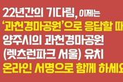 전국연합뉴스 박점규 기자 | 양주시가 과천경마공원 양주시 유치를 위한 범시민 10만 명 서명운동에 본격 돌입했다. 양주시는 지난 23일 '과천경마공원 양주시 유치 추진위원회' 발대식과 함께 10만 명 서명운동을 추진한다고 30일 밝혔다. 서명은 양주시 홈페이지를 통한 온라인 서명과 오프라인 서명부 작성 두 가지 방식으로 진행되며, 양주시민뿐 아니라 국민 누구나 참여할 수 있다. 양주시가 경마공원 유치 후보지로 제시한 곳은 광적면 광석리 일원의 광석지구(약 116만㎡)다. 해당 부지는 2004년 택지개발지구로 지정된 이후 22년간 방치된 곳으로, 토지 보상이 완료돼 별도의 보상 절차 없이 즉시 개발에 착수할 수 있다는 점이 최대 강점으로 꼽힌다. 시는 경마공원이 이전될 경우 연간 약 500억 원의 지방세 수입과 약 3,000명의 상주 인력 유입, 방문객 증가에 따른 지역 상권 활성화 등의 효과를 기대하고 있다. 양주시 관계자는 "범시민 서명운동은 양주시의 의지를 정부와 한국마사회에 직접 전달할 수 있는 가장 강력한 방법"이라며 "시민 여러분의 적극적인 동참을 부탁드린다"고 말했다.