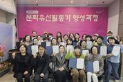 전국연합뉴스 김용태 기자 | 당진시는 합덕수리민속박물관에서 지난 2~3월 ‘문화유산 활동가 양성과정을 운영하고, 지난 26일 수료식을 개최했다고 30일 밝혔다. 이번 과정은 지역 주민들이 지역 문화유산 활용 행사 및 축제장에서 체험 공간 운영 인력으로 참여하고, 이를 통해 합덕제 등 관내 문화유산을 대내외에 홍보하기 위해 진행했다. 시는 10회에 걸쳐 대학교 전문 교수진을 초빙해 ▲성곽의 기원과 당진의 읍성 역사 알아보기 ▲합덕제 자연 생태계 이야기 ▲전통 과학기술과 24기(氣) 농경문화 ▲고대 왕릉 및 불교문화유산 속 보존과학 ▲현장답사 ▲문화유산과 체험교육 사례 및 활용 교육 등 다양한 분야에 대해 밀도 있는 역량 강화교육을 추진했다. 교육 수료생들은 교수급 강사진의 강연과 답사에 만족하며, “향후 더 다양한 교육을 받았으면 좋겠다”는 등의 반응을 보였다. 수료생들은 향후 협의를 통해 당진합덕 연꽃축제, 당진국가유산 야행 행사, 면천읍성 행사, 기지시줄다리기 축제, 심훈상록문화제 및 국화전시회 등 다양한 문화유산 활용 행사에서 체험관을 운영·지원하면서, 당진의 문화적 가치성을 알릴 예정이다. &