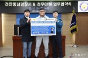 전국연합뉴스 김대환 기자 | 천안 동남경찰서(서장 송해영)는 2025년 12월 19일(금) 오후 2시, 천안동남경찰서 중회의실에서 무에타이·MMA 전문 체육관인 ‘천무짐’(관장 문보람)과 ‘경찰관 체력 증진 및 복지 향상’을 위한 업무협약(MOU)을 체결했다고 밝혔다. 이번 협약은 각종 치안 현장에서 활동하는 경찰관들의 강인한 현장 대응력을 기르고, 격무에 시달리는 직원들의 건강한 삶을 지원하기 위해 마련됐다. 협약에 따라 천무짐은 천안동남경찰서 소속 현역 경찰관 및 전 직원, 그리고 그들의 직계가족에게 수강료 50% 할인 혜택을 제공하기로 했다. 대상 종목은 ⯅MMA(종합격투기) ⯅킥복싱 ⯅복싱 ⯅레슬링 ⯅다이어트반 등이며, 상담 시 공무원증을 제시하면 혜택을 받을 수 있다. 천안동남경찰서장은 “이번 협약을 통해 직원들이 평소 접하기 어려웠던 실전 격투 스포츠를 통해 체력을 키우고 스트레스를 해소하는 데 큰 도움이 될 것으로 기대한다”며 “앞으로도 직원들이 건강하게 근무할 수 있는 환경을 만들기 위해 다양한 복지 혜택을 발굴해 나가겠다”고 말했다. 한편, ‘천무짐’은 천안시 서북구 성정공원3길에