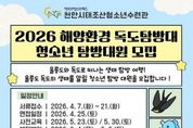 전국연합뉴스 김대환 기자 | 천안시청소년재단 산하 천안시태조산청소년수련관은 지역 청소년을 대상으로 ‘2026 해양환경 독도탐방대’ 참가자를 모집한다고 7일 밝혔다. 이번 프로그램은 청소년들이 울릉도와 독도의 자연환경을 직접 체험하며 해양 생태계에 대한 이해를 높이고 영토의 소중함을 인식할 수 있도록 기획됐다. 모집 대상은 천안시에 거주하거나 관내 학교에 재학 중인 2008~2013년생 청소년 12명이다. 신청 기간은 7일부터 오는 21일까지이며, 참가를 희망하는 청소년은 네이버 폼을 통해 접수하면 된다. 탐방대는 서류 접수와 면접, 사전교육을 거쳐 선발되며, 울릉도·독도 현장 탐방은 오는 6월 4일부터 6일까지 2박 3일간 실시된다. 자세한 사항은 천안시태조산청소년수련관(041-566-0179)으로 문의하면 된다. 김응일 천안시청소년재단 대표이사 직무대행은 “청소년들이 우리 영토에 대한 이해를 높이고 올바른 가치관을 형성하는 계기가 되길 바란다”고 말했다.