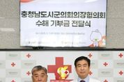 전국연합뉴스 김대환 기자 | 충남시군의회의장협의회(회장 김경제 서천군의회 의장)는 11일 대한적십자사 충남지사에 방문하여 지난 7월 집중호우로 특별재난지역에 추가 지정된 8개 시군(천안, 공주, 아산, 당진, 부여, 청양, 홍성, 서천)에 대해 총 800만 원의 성금을 기탁했다. 충남도 내 15개 시군 의장들로 구성된 충남시군의회의장협의회는 이번 집중호우로 인해 막대한 피해를 입은 도민들이 조속히 일상을 회복할 수 있도록 뜻을 모았다. 김경제 회장은 “최근 집중호우로 많은 주민들이 어려움을 겪고 있는 상황에서 충남 시군의회의장들이 함께 힘을 모을 수 있어 매우 뜻깊다”며 “주민들의 피해 복구는 물론이고, 이러한 피해가 다시 발생하지 않도록 자치단체와 함께 선제적인 재난예방 대책을 마련하는 데 지혜를 모으겠다”고 말했다. 한편, 이번 성금은 대한적십자사를 통해 집중호우 피해 복구를 위해 사용될 예정이다.