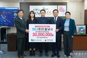 전국연합뉴스 김대환 기자 | (재)천안시복지재단은 28일 ㈜드림낚시가 저소득 아동복지 증진을 위해 후원금 3,000만 원을 기탁했다고 밝혔다. 드림낚시는 지난해 사랑의 열매 나눔 명문 기업에 가입하면서 5년 간 1억 원을 약정했으며, 지난해 4,000만 원 기부에 이어 올해도 저소득 아동을 위한 따뜻한 나눔을 실천했다. 정철인 드림낚시 대표는 “아동들이 자립할 수 있도록 조금이나마 도움이 되길 바란다”며 “앞으로도 우리의 미래인 아동을 돕는 기업이 될 것”이라고 말했다. 이운형 천안시복지재단 이사장은 “매년 아동의 미래를 위해 후원해 주시는 드림낚시에 감사드린다”며 “후원금이 투명하게 사용될 수 있도록 최선을 다할 것”이라고 말했다.