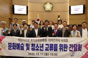 전국연합뉴스 김대환 기자 | 천안시의회 복지문화위원회는 10월 11일에 일본 타카츠키시의회 의원 등을 초청해 양 도시 간 문화교류 및 청소년 분야 협력 방안을 논의하는 간담회를 개최했다. 이번 간담회는 천안시의회 복지문화위원회 이종만 위원장과 류제국 부의장의 주관으로 ▲박종갑 부위원장, ▲엄소영 의원, ▲유영진 의원, 행정보건위원회 ▲이상구 의원이 함께 참석했으며, 타카츠키시의회에서는 ▲마나베 소우이치로 의원, ▲키타가와 준이치로 조직위원장을 비롯한 관계자들이 함께해 문화·예술·청소년 분야 협력 확대를 위한 다양한 의견을 교환했다. 양측은 특히 천안시와 타카츠키시가 모두 ‘국제 재즈스트리트 페스티벌’을 개최하는 도시라는 공통점을 바탕으로, 재즈 음악을 매개로 한 시민 중심의 문화교류 확대와 상호 이해 증진 방안을 논의했다. 또한 향후 양 시 의회 간 협력 관계를 더욱 공고히 하기 위한 교류 협약(MOU) 체결 추진에 대해서도 의견을 나누었다. 류제국 부의장은 “이번 만남이 양 도시의 문화적 교류를 넘어 청소년 세대를 중심으로 한 실질적 협력의 계기가 되기를 바란다”며, “천안시의회는 앞으로도 시민과 함께하는 국
