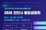 전국연합뉴스 김대환 기자 | 천안시는 오는 24일 천안과학산업진흥원과 함께 천안SB플라자에서 ‘중소기업 지원 및 과학기술사업화를 위한 2026 천안시 통합설명회’를 개최한다고 11일 밝혔다. 이번 설명회는 시와 관련된 기관·단체에서 추진하는 중소기업 지원사업에 대한 종합정보를 제공하고, 과학기술사업화 유관기관의 지원사업을 안내하기 위해 마련됐다. 설명회에는 중소기업 지원, 연구개발(R&D), 금융·보증, 기술사업화, 투자 분야의 공공기관 , 연구기관 등 22개 기관이 참여하며, 주요 정책 발표와 1:1 상담 부스 등을 통해 맞춤형 정보를 제공할 예정이다. 시 관계자는 “이번 설명회를 통해 중소기업들이 다양한 지원제도를 효율적으로 제공받을 수 있길 바란다”고 말했다.